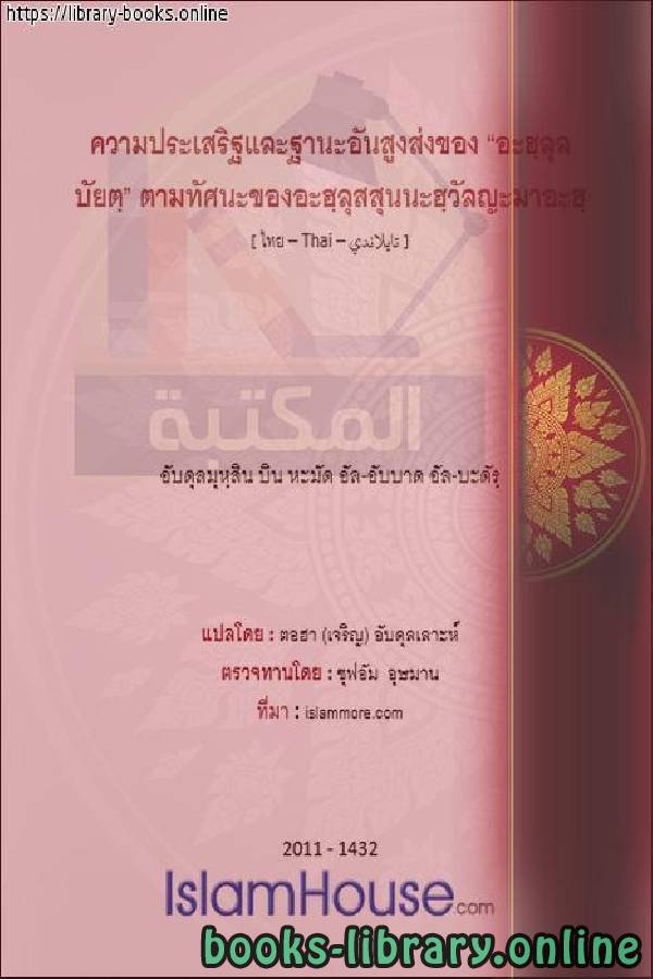 كتاب فضل أهل البيت وعلو مكانتهم عند أهل السنة والجماعة คุณธรรมของผู้คนในบ้านและฐานะอันสูงส่งของพวกเขาท่ามกลางนิสและชุมชน PDF
